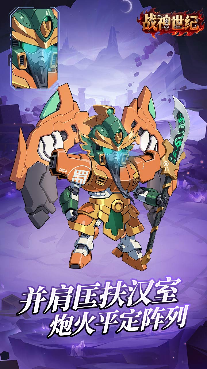 《战神世纪(机甲三国0.1折)》是一款以三国为原型的机甲回合手游、玩家可操控战神关羽、智囊诸葛、魅控貂蝉、通过机甲照进现实、探索全新三国时间线、游戏融入卡牌养成、策略战斗和社交互动、由专业团队精心打造、一起来玩转三国吧~
