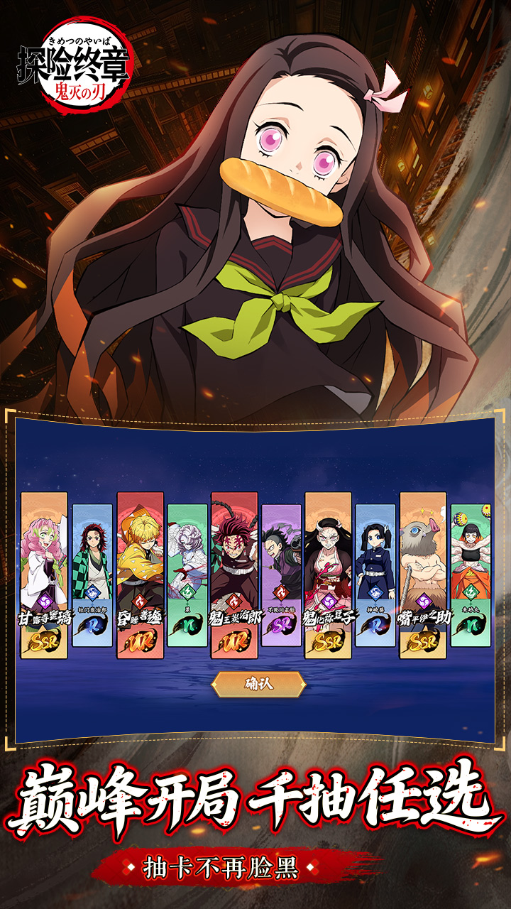 充值比例1元:10游戏货币!宿命轮回再启,柱与弦羁绊重燃!热血交织的《探险终章》斩鬼战场,组建专属巅峰鬼杀队,改写每一段意难平的遗憾剧情,守护心中珍视之人!【全呼吸法复刻 沉浸式斩鬼】日轮刀寒光破晓,全呼吸法技能1:1还原!水之呼吸的流畅连击、炎之呼吸的炽热爆破、霞之呼吸的缥缈突袭,360°全景战斗视角搭配原作级剧情音效,每一场对决都燃爆感官!【宿命羁绊养成 解锁隐藏剧情】深度羁绊系统上线!与柱、弦角色并肩作战解锁专属剧情,触发宿命羁绊增益,定制个性化养成路径。从锻刀村的历练到花街的潜伏,每一次选择都可能改写角色命运!【经典战役复刻 跨服共战鬼王】无限城的诡谲、花街的迷影、锻刀村的守护……全经典战役高精度还原!跨服组队实时联机,与全服玩家同屏挥刀,呼吸共鸣叠加战力,以团队之力冲破鬼王诅咒,战至黎明破晓!
