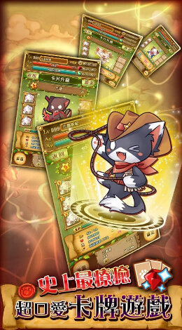 九藏喵大冒险 是一款卡牌养成游戏,除了大家熟悉的喵王国国王『九藏』、樱花村村长『晴信』、喵魔界帝王『雷帝』之外,还有许多尚未公开的猫咪角色会出现在游戏中,超过两百隻猫咪角色都是由九藏喵窝团队亲手绘製,绝对可以满足你蒐集欲望! 现在亚甸大陆各个地方开始出现邪恶的龙族、狡猾的猴怪,甚至是喵族的天敌──野狗族,许多地方都遭到佔领破坏,快来《九藏喵大冒险》跟喵喵们一起战斗吧!