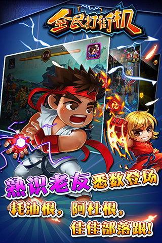 《全民打街机》是一款高度还原街机动漫主题的Q版2D回合制游戏。以创新的场景人物展示,突破卡牌游戏的枯燥特效和卡片展示的传统方式。独创的队长光翼不仅能带你装A带你飞,更能使队伍战斗力提升爆表,队长可招募各大街机动漫世界的强力伙伴,在不同的游戏时空中穿梭。还原度超高的角色,狂拽酷炫的技能释放,最热血的街机战斗效果,最震撼的音效冲击,在体验游戏成长的同时,更带来无限激情的视听体验。