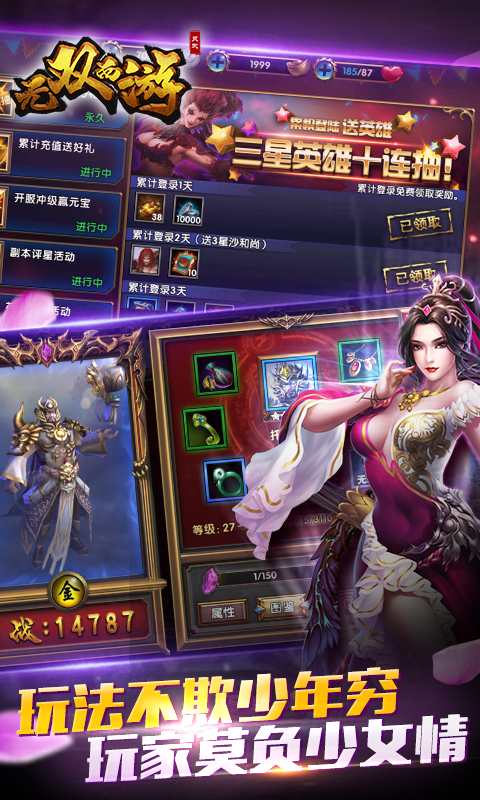 2、内容丰富,玩法多样的成长系统,结合独特的活动和竞技场玩法,使玩家获得丰富有趣的游戏体验;