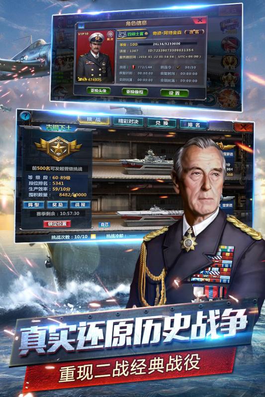 PVE包含二战所有经典战役,竞技场,跨服战等多种PVP模式更让玩家感受真实海战场面
