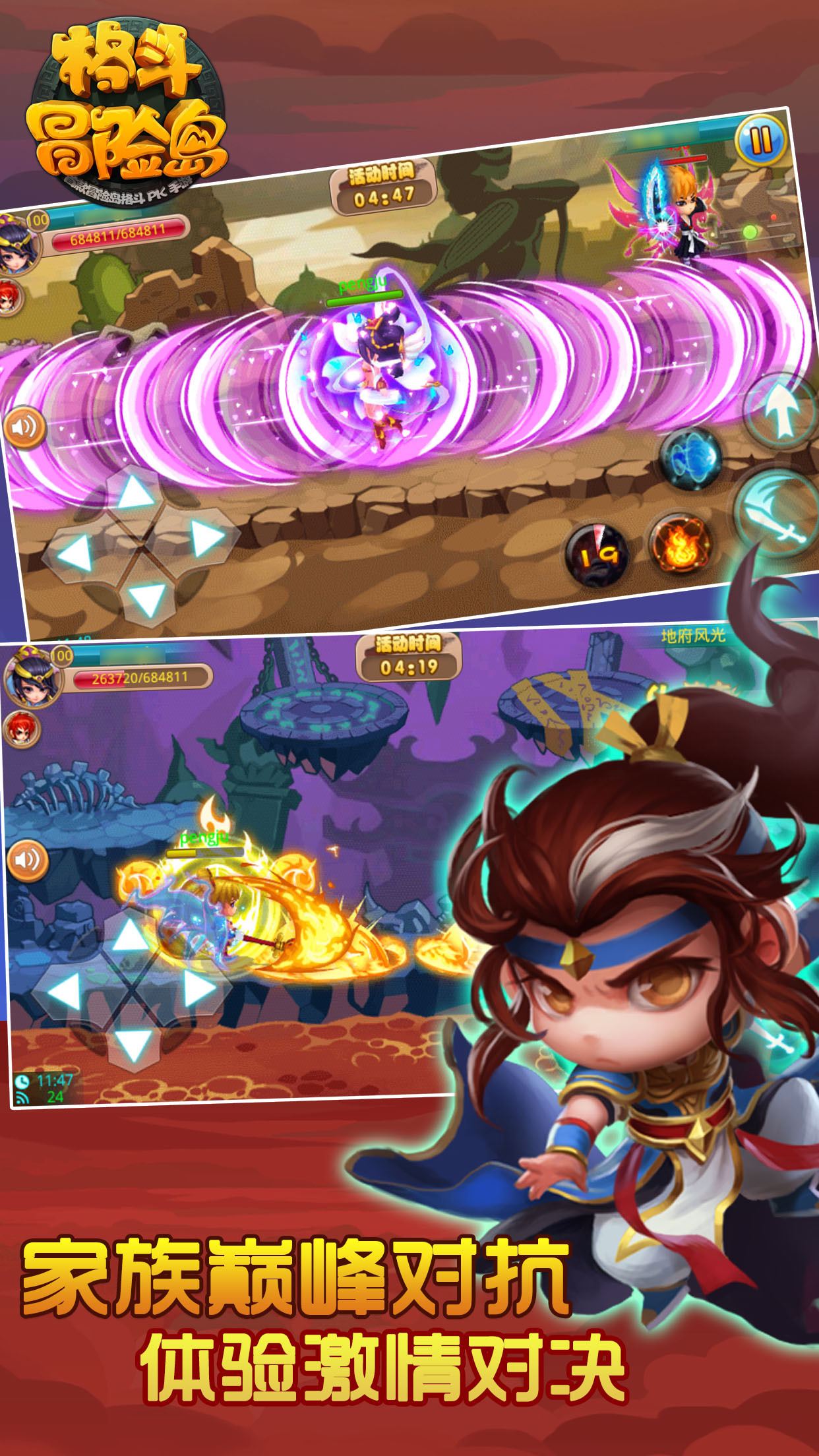 2014首款冒险岛格斗PK手游--《格斗冒险岛》强势来袭!动作与解密的完美契合,爽快打斗的同时,展现你的超人智慧!横纵结合、二段跳跃的操作方式,给你不同于街机的完美体验!狂暴剑士、灵动刺客、飘逸弓手、玄妙法师,极致操作打斗,配合绚丽的战斗画面,带你进入梦寐以求的神话世界!组队冒险PVP,一起探索未知领域;萌宠养成,40多种神宠等你搜集。天生爱冒险,战场就在《格斗冒险岛》!