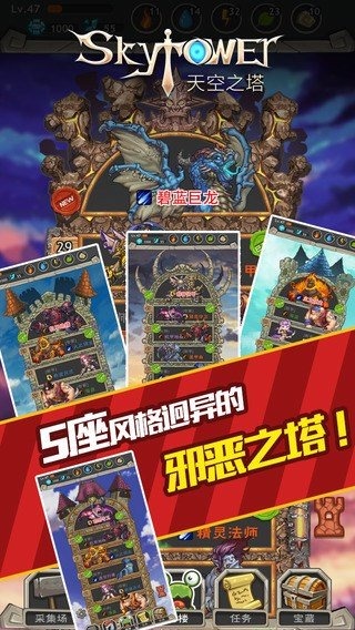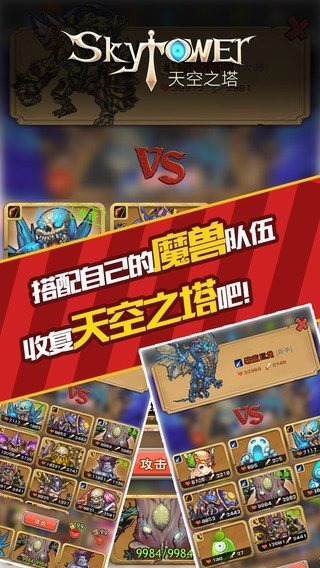 《天空之塔》是一款魔幻题材的卡牌对战类手游。游戏讲述的是,魔界入侵天界,侵占了天空之塔,天空之塔沦落成邪恶的塔楼,大量魔兽寄居其中,所以现在起,与艾莉一起收复天空之塔吧!5座风格迥异的邪恶塔楼等你来挑战,超过200个魔兽形象等你来收集,简单有趣的回合制战斗等你来体验!
