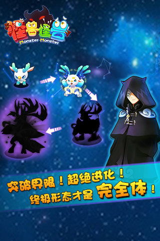 "《怪兽怪兽》将角色扮演游戏故事性,宠物游戏的玩法和卡牌游戏的便利集于一身,开创次世代3D手游的新方向。异世界的元素之神,为了维护世界的平衡将你召唤至此。携四大元素系的神兽们,一起拯救这个美丽奇妙却又岌岌可危的世界吧!