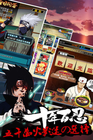 这款游戏以日本热门漫画火影忍者为题材,融十年百忍于一役,集卡牌对战、忍者养成、布阵策略、尾兽抓捕、好友交互等玩法于一体的优秀动漫游戏!专业所以完美,游戏内所有画面均由日本集英社一流画师历时一年倾力打造,效果远超当今众多日本一流游戏,为火影爱好带来了最原汁原味的动漫体验,也让国内广大手游玩家体验到了日本动漫手机游戏奢华的视觉效果。