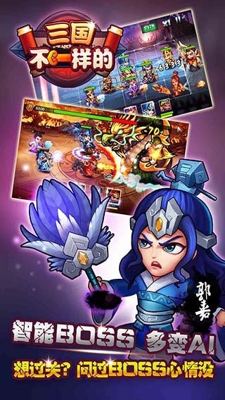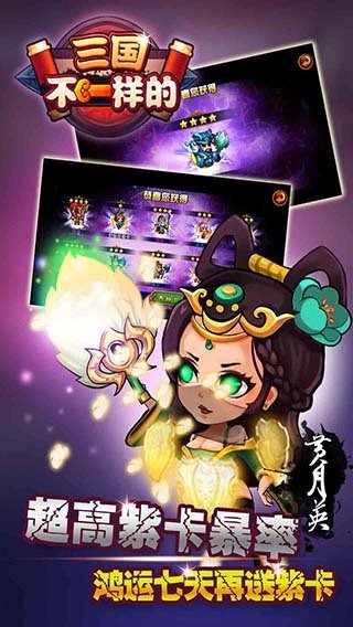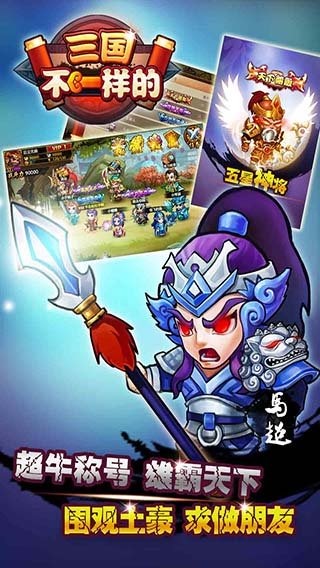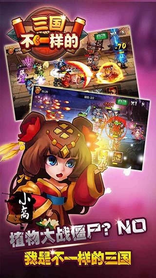 《不一样三国》是一款借鉴了植物大战僵尸战斗方式的全新手游。绝对人性化设计,不花钱依然可以获得极品装备和极品武将,等级奖励高达38000元宝,登录30天奖励价值5720人民币道具。120个三国武将,40多种技能组合,丰富的任务,逗比好友赠送体力,快来一起激情四射吧,你还在等什么,一起来战吧。