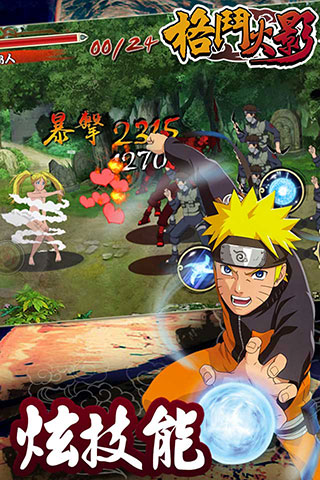 2014年首款横版火影格斗手游,以风靡全球的动漫“火影忍者”为题材,将纯正的日系动漫风格搭配横版街机闯关玩法,超高水准重现原著动漫中激斗的忍者之路。
