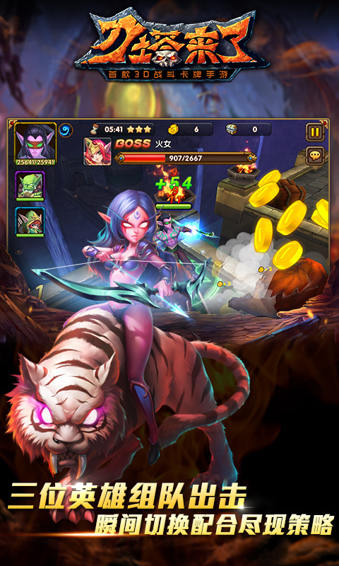 《刀塔来了》是首款3D战斗卡牌手游,是备受玩家关注的顶级刀塔题材手游。游戏拥有全3D炫酷战斗表现、更具爽快感的即时战斗模式,颠覆传统回合卡牌的固有玩法,为你带来畅爽、自由的战斗乐趣!形象各异的英雄、酷炫华丽的技能,在这里可以培养你最喜爱的刀塔英雄,搭配你的最强专属组合!