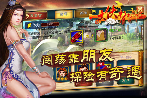 大侠打天下,妖姬来助阵!2014年最与众不同的武侠大作《大侠帮帮忙》登场了,《大侠帮帮忙》是一款卡牌武侠题材的RPG策略游戏,奇特的穿越剧情,全新的九宫格战斗,拳头/剪刀/手掌三种相克侠客,独有的闯荡+探险模式,加上风情万种的武林妖姬,独特的侠客缘分设定及好友互助系统,创造了一个梦幻般的武侠世界。男儿仗剑走天涯,希望《大侠帮帮忙》这个满载我们梦想与努力的作品,能够带给你快乐,让你回到仗剑走天涯的武侠时代,豪情结义,共闯江湖。