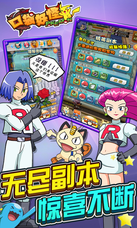 首款国民级3D宠物对战手游《口袋妖怪》百分百的还原了经典动漫,宠物抓捕、培养和进化,图鉴收集、挑战切磋、激烈竞技场争夺精灵联盟冠军,此外还添加了全新的宠物装备,精灵修炼等丰富的特色玩法,让大家在回味经典的同时,又能感受更多的游戏乐趣。俏皮可爱的皮卡丘,威武雄壮的水箭龟,神秘霸气的超梦,是否也带给过你无数的欢乐和回忆?那么你一定不要错过全新宠物对战手游《口袋妖怪》。
