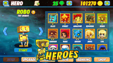 嘭嘭英雄(pang pang hero (shooting))安卓版游戏采用unity3D引擎制作,画面精美,动作流畅,嘭嘭英雄安卓版采用简单的操作形式,通过虚拟操纵杆移动英雄进行走位,在战斗时人物会自动进行普通攻击,而在界面的右边会有三个技能键,我们可以在这里登陆技能进行使用。游戏的整体感觉都会比较类似另一款同类游戏奇幻射击,喜欢的朋友不妨一试哦。 提示 :