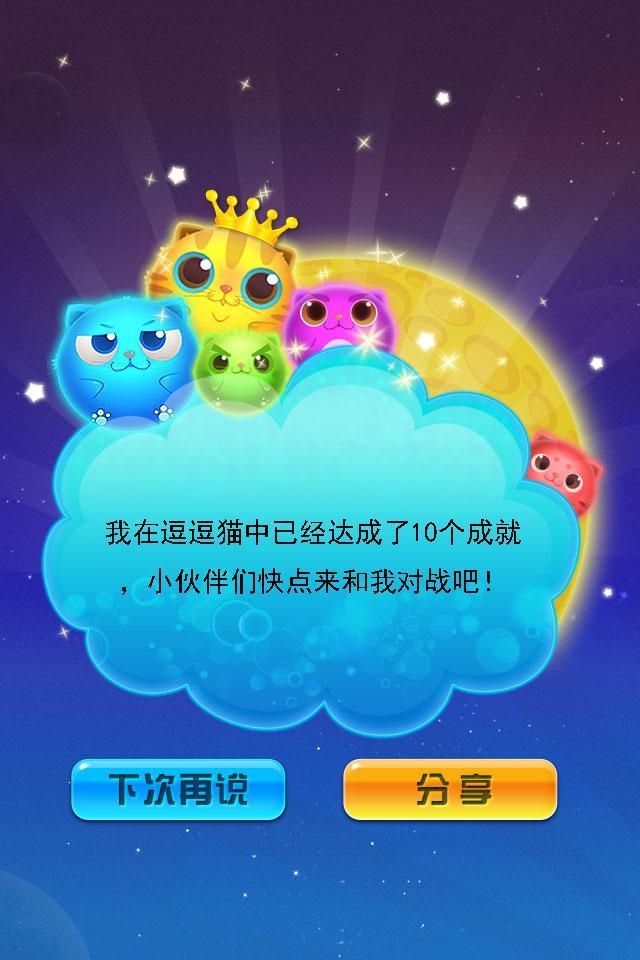 随时随地和好友一起玩,史上最萌的消除游戏。在游戏《逗逗猫》中,用户使用微博账号登陆,能够同步游戏中部分数据,包括昵称、好友等。玩家可以发微博并@好友分享自己的战绩。