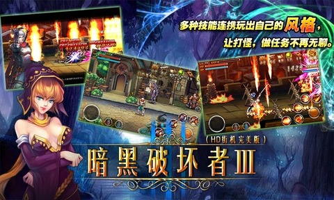 《暗黑破坏者3》是一款横版ARPG动作类力作,以地下城副本的形式展开,以装备卖点为核心,连击系统,转职系统,宠物系统,副本系统,随机事件为辅助,上百个游戏音效以及超爽快的打击感。