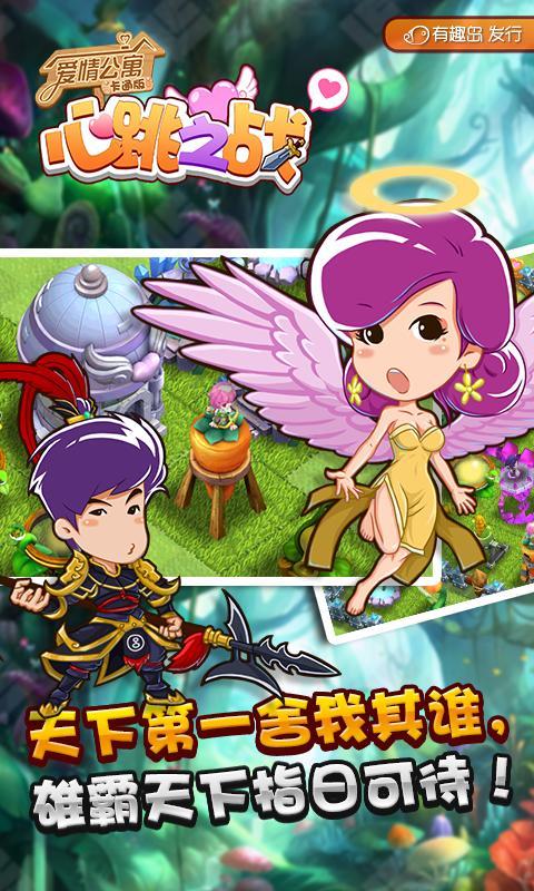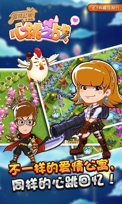 《爱情公寓卡通版手游-心跳之战》(简称心跳之战)是一款根据中国第一神剧《爱情公寓》电视改编的大型手机网络游戏。你可以携手公寓明星一起共同作战,挑战全服,称霸全球!并打造属于自己的私家公寓!情侣入驻,水电全免哦!