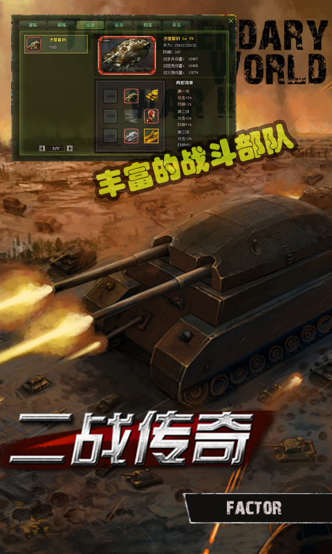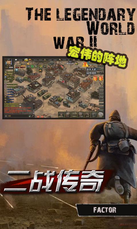 《二战传奇》将玩家带回战火纷飞的第二次世界大战的伟大战役中,玩家将扮演一位在前线与指挥部失去联系的军官,带领剩余部队建立起自己的根据地,不断发展壮大后与祖国会合!游戏以战争策略为基础,融合了策略游戏中的部队养成系统、装备系统、将领系统等,各种功能应有尽有,游戏整体风格醇厚,无论是建筑场景、军队军械都力求体给玩家带来现完美的二战体验,写实、逼真的二战军事风格定将为广大玩家带来前所未有的历史震撼,更多休闲元素,更人性化设计理念,各种VIP功能,让您更轻松的体验策略游戏带来的各种乐趣。