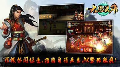 大唐英雄是一款武侠风格的集回合制策略战斗、RPG收集养成等当前流行玩法为一体的RPG手机网游!是以大唐双龙传小说为故事背景的轻度休闲挂机游戏。轻松对战,无需担忧让你挂机挂到爽。还等什么快来尝试吧!