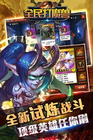 欢迎来到卡牌版魔兽世界,想象一下,手机里的魔兽世界是什么感觉?! 《全民打魔兽》是以魔兽题材为背景的手游,高度还原百种魔兽英雄,搜集伊利丹、萨尔、吉安娜,组成梦想中的阵容踏上远征之路,快来一同探险艾泽拉斯大陆! 【最魔兽的 经典英雄】 十大职业百余英雄,伊利丹吉安娜为你而战,魔兽世界风强势来袭! 【最完美的 阵容战术】 阵容轮换诠释完美战术,激发策略搭配奥义,每个阵容组合都将成为传奇! 【最专业的 数值体系】 要想以弱胜强,你必须掌控英雄,奶、坦克、DPS相互搭配,来这里逆袭土豪! 【最激情的 竞技战役】 竞技场、世界BOSS战役多种玩法都将展现你的魄力。来吧英雄,为了荣誉战个痛快! 【最华丽的 战斗模式】 最真实的3D战斗,绚丽的战斗和技能特效都能让你置身于真实的魔兽场景当中!