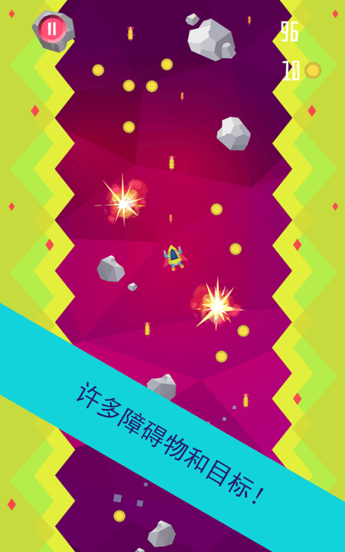 您的飞船正在加速前行。当前您前方是陨石和太空海盗。击落敌军的来收集金币。您可以使用金币购买更加强大的飞船。摧毁海盗头目,解锁新的目标地点。收集更多积分,在排行榜上一路攀升。全速前进!银河系在等着您。 • 激烈的游戏体验 • 优美的原画 • 直观的操作 • 可以晋级的多艘飞船