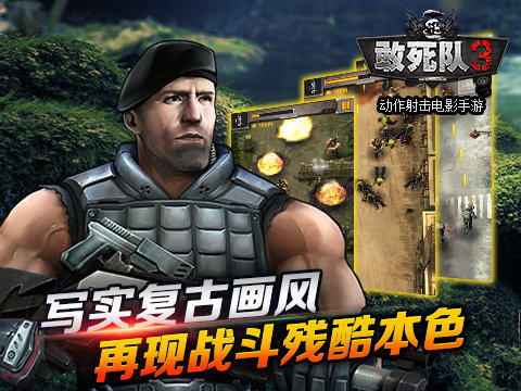 《敢死队3》游戏以纵版射击为基本类型,并将翻滚、近身格斗、载具等丰富动作射击元素充分融入其中,配以写实的画风与爽快的操作手感,而且《敢死队3》中充斥的各种暴力好莱坞元素。