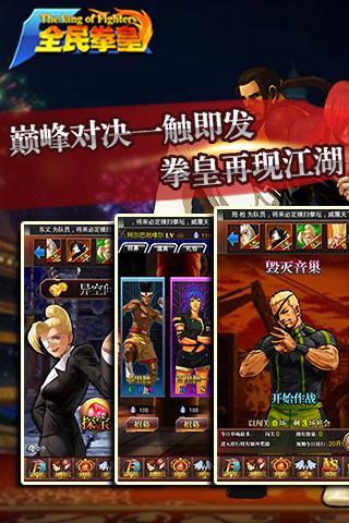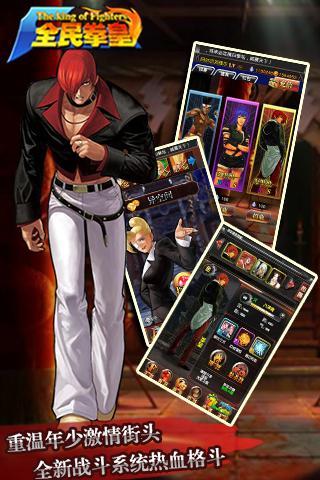 "《全民拳皇》是一款全新的战斗卡牌手游,以草薙京和他的宿命之敌八神庵的奇妙故事为背景,完美再现《拳皇》经典场面和经典桥段,并且推陈出新,打造拳拳到肉的战斗设定,颠覆传统卡牌游戏战斗体验,邪恶大神再现江湖,多种活动,让卡牌不再乏味!