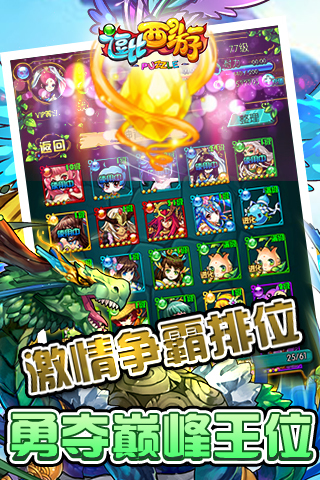 游戏的亮点在于新颖的核心战斗玩法。采用拖球式连线消除战斗,模拟真实物理碰撞和弹力,轻松易上手。 每一次攻击最多可以推动三个宝珠(某些幻神队长技能除外),相同颜色的宝珠靠近会吸引爆炸,通过拖动让两颗相同颜色的宝珠相撞就会消除,三消以上可发起群攻,宝珠消除后会从界面随机冲出新宝珠,超炫的爆炸特效和巧妙的战斗随机性持续给玩家带来惊喜体验。