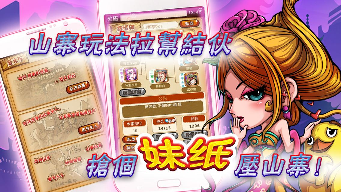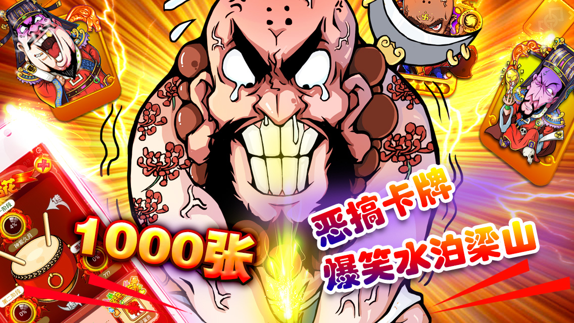 《梁山小伙伴--天天撸水浒》是由国内新锐游戏厂商梦城互动推出的一款水浒题材Q版爆笑卡牌手游,该游戏以《水浒传》为题材,结合了诸多的幽默和恶搞元素,画风和剧情都非常诙谐搞笑。游戏中拥有宋江、李逵、潘金莲等1500余张风格恶搞的武将、武器、防具、坐骑、宝典卡牌,还有高自由度卡牌升级养成和强大的山寨经营养成系统,梁山一百单八将上演十万个冷笑话,小伙伴们都惊呆了!