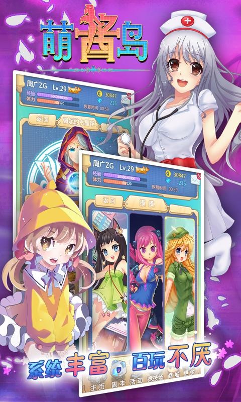 《萌酱岛》以日系美少女漫画为蓝本,创造性的将200多个知名美少女形象植入到卡牌游戏之中,并加入养成元素,让宅男不仅能与二次元美女们并肩战斗。指尖轻点,你将感受到不一样的清凉与激爽。