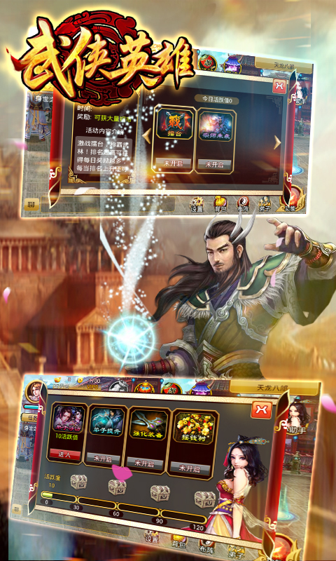 《武侠英雄》是一款电影级武侠RPG游戏,画面栩栩如生。执掌一派掌门,打造属于自己的门派!美艳御姐萝莉任你摆弄(60多武林软妹子),霸气强力的壮男组合(80位经典武侠奇士),网罗天下神兵(300种绝世兵刃问世)!排兵布阵,任你运筹帷幄!