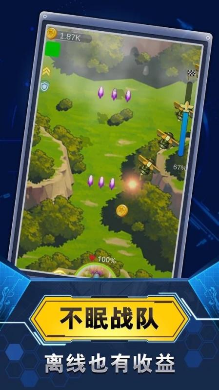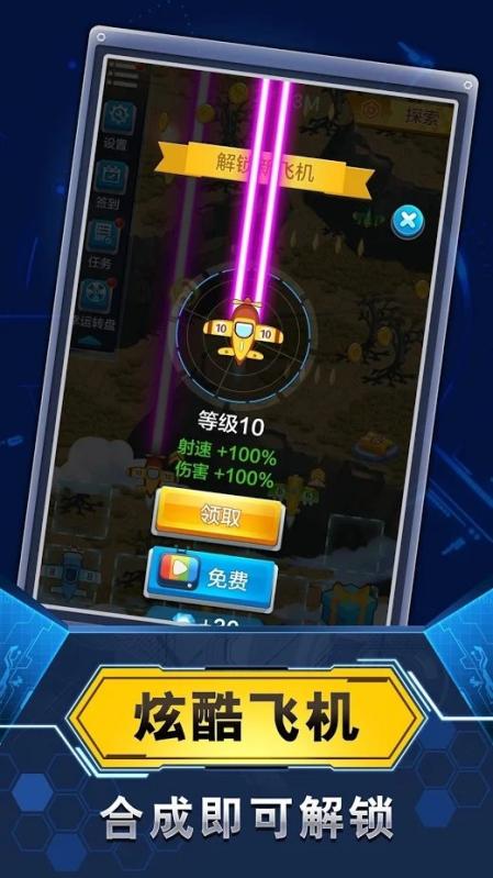 合成飞机进行升级成为战斗力更强的飞机,建立你的飞机帝国,就可以不断生产金币。歼灭敌机赚取大量的金币,再利用金币买更强的飞机,合成最终形态的最强战机。 这是一个将挂机,合成,塔防,飞机大战完美融合的单机游戏!不需要下载一堆游戏,这个游戏可以满足你的所有需求! 【游戏玩法】: -通过合并将飞机升级,歼灭敌机获得金币。 -游戏中有超过40种不同的飞机。合并升级获得更高级飞机,火力加强! -惊喜礼包随机掉落,打开获得超额奖励。 -放置系统,在停机坪上飞机可以自动战斗和生产金币。 即使您处于离线状态,也可以获得收益。 【游戏特色】 -玩法简单,但令人上瘾。 -免费下载,无需流量就能玩,每日登录还有丰厚奖励哦! -丰厚金币奖励、复活、火力加倍技能让您制霸天空,尽享王者荣耀! -超华丽弹幕,酷炫的战斗特效,多种游戏模式,绝对让您战得酣畅淋漓! 加油干,让您的飞机团队成为世界上最强大的战队吧! 提示 : 【说明】 使用足够的金币不减反增。