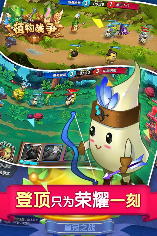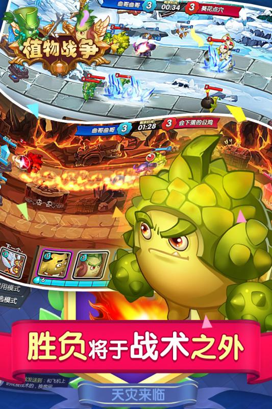 《植物战争》是一款休闲pvp卡牌竞技场手游。化身为卡牌的植物和昆虫被赋予非凡的能力,为争夺水晶而战。游戏以纯pvp战斗为核心,同时开放无限火力,天灾降临等多种娱乐元素战斗。召唤师通过不同的卡牌组合进行每局2分钟的战斗,以摧毁对手水晶为目的进行巅峰王者之争。