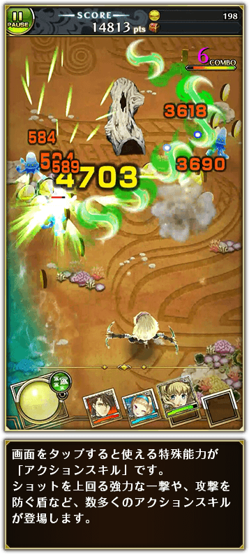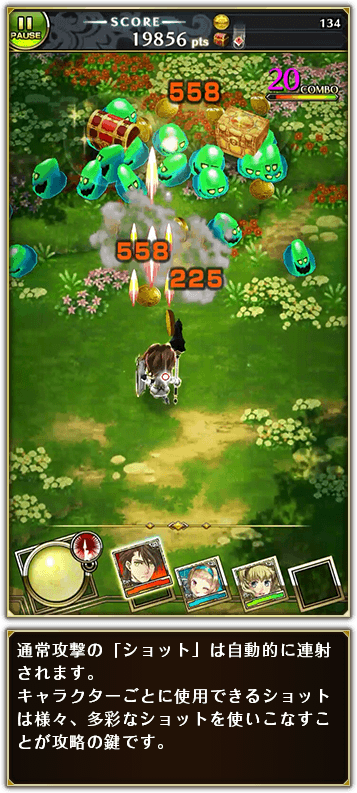 《暗影之石》是一款RPG类弹幕射击游戏。本作作为一款弹幕射击游戏,角色们将会在地图中一边移动一边射击,射击将会是自动进行,根据角色的不同还会有各自的“动作技能”(アクションスキル)用于躲避敌人的弹幕或是走位。当然,弹幕游戏中可以帮玩家化解过多弹幕和敌人危机的“大招”也是存在的。