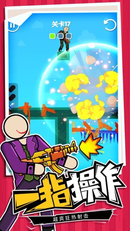 火柴人头目射击是一款以火柴人为主角的动作射击类游戏。你需要在不同的关卡中消灭敌人,拯救人质。这里的武器种类是非常多样的,并且还有强力的道具供你使用。炫酷的爆炸射击特效将给你带来无尽的畅爽感,简单的操作方式也能快速上手。喜欢的话就来下载吧!