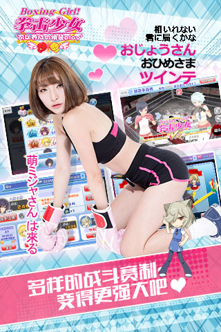 《拳击少女》是一款纯日系血统的3D软妹养成游戏,围绕拯救哥哥的拳击社展开!听着让人心跳不已的个(fu)性(li)配音欣赏装扮各异的妹妹们在拳场上挥洒汗水,带来不一样的游(shen)戏(shi)体验≖‿≖✧ 将日语声优、中二剧情、绅士画风等多种元素完美结合,爱与友情、热血与汗水交杂的青春校园喜剧将由你亲手打造(。◕ ∀ ◕)