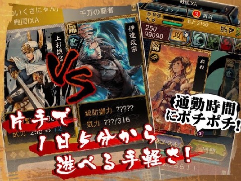 《战国IXA 千万的霸者》是一款以战国为题材的卡牌对战RPG手游,玩家需要组合自己的武将卡牌组成队伍,击败敌人。游戏中的卡牌基本分成四种属性,玩家要采用不同的组合来应对敌人,取得胜利。