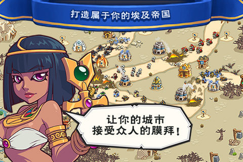 《沙漠帝国》是ZPLAY(掌游天下(北京)信息技术有限公司)代理的一款模拟经营+策略塔防游戏。游戏中你成为一个法老,建造自己恢宏的帝国堡垒同时招募强大的上古卫队,去对抗邪恶之神赛思。运用你强大部队来对抗和守护你的城市,防止赛思及其他法老对你城市的侵略。游戏中提供多种类型的箭塔组合,战斗中合理排兵布阵就能轻易击溃强大的敌人,成为古埃及最伟大的法老王。让你的城市接受众神的祝福,让你的部队铸就一部传奇!