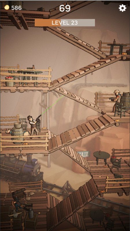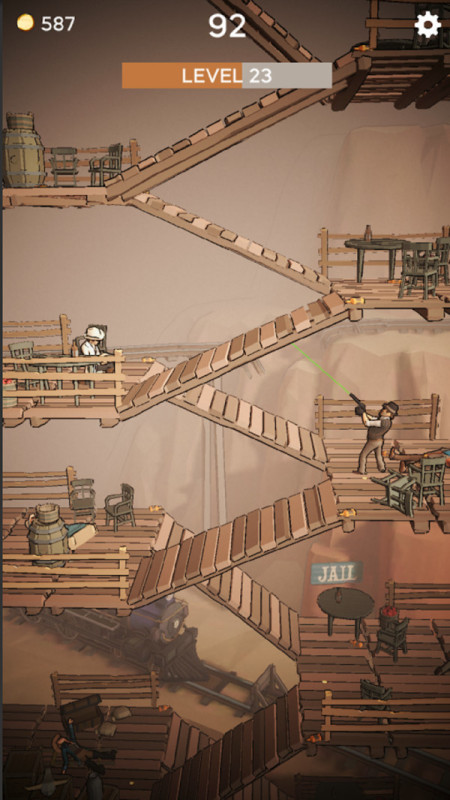 西部子弹先生是一款卡通风格的动作射击类闯关游戏。玩家将在游戏中扮演一名帅气的牛仔,你要挑战一层又一层的敌人,证明自己的实力。游戏的操作非常的简单,你和敌人的子弹都会被障碍物挡住,所以你要找准好的时机,快速射击,一击毙命。喜欢这款游戏的话可不要错过哦,快来下载吧!