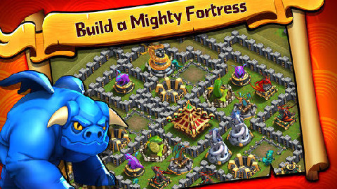 《龙之斗》是一款即时策略游戏,借鉴了COC的基本模式,还加入了模拟经营的玩法。这一次,我们将回到远古的恐龙时代。进入游戏后,眼前这片绿草地就是我们的根据地了,首先建立一些设施丰富它。矿洞、龙巢、雕像等等,每一个种类都建好以后,我们还需要练兵。