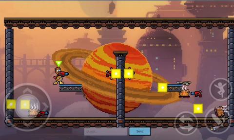乱斗鸡游戏采用了独特的横版动作结合像素风格,玩家能够在游戏中享受更多独特的对抗玩法,在游戏中玩家能够体验到2-4人的乱斗,在不同的地图上来利用各种各样的武器来打败你的对手,你还能够利用撞死来迷惑你的对手,并给你的对手出其不意的一击,游戏的玩法简单而魔性,快来试试看吧。