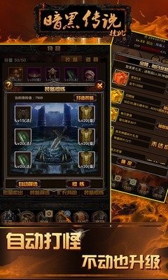 暗黑传说是一款和所有RPG游戏都不一样的游戏,它属于放置类RPG游戏,这里的打怪都是自动的,自从你创建角色开始,就会24小时不停的自动打怪获得经验和完美,掉落装备,即使退出游戏也不会停!随时再回到游戏就可以收获一堆经验完美和装备。你所要做的就是挑选最好的装备给你的人物和宠物穿上,不断挑战BOSS和其他玩家,最终达到实力的巅峰,获得最高荣誉。