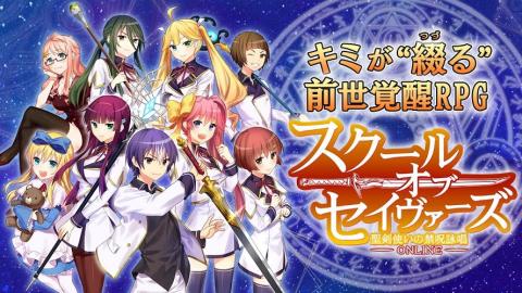 《学园救世主:圣剑使的禁咒咏唱 ONLINE》(スクール・オブ・セイヴァーズ 聖剣使いの禁呪詠唱 ONLINE)剧本由原作者亲自监修。在TGS2014现场,官方首先公布了“岚城五月”和“四门摩耶”两位女主角的3D建模,完成度还是非常不错的。故事讲述了有救世主、远古之龙、王子转世、冥王转世四重身份的龙傲天男主“灰村诸叶”,为了守护结下永世羁绊的两名挚爱而英勇战斗的故事