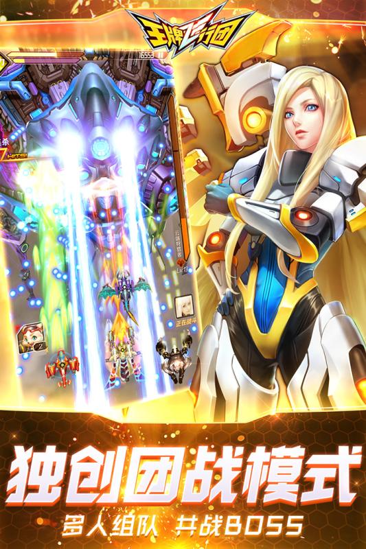 《王牌飞行团》是由华夏乐游倾力打造的首款星际冒险团战飞行射击手游,开创飞行射击手游3.0时代。超爽快手感,超华丽弹幕,超酷炫战斗技能特效!丰富的玩法,百变的战机搭配组合,成就超强飞行体验!多人联机,和队友一起迎接挑战,组团对抗巨型BOSS!快和好机友一起,为成为最强星际猎人而战吧!