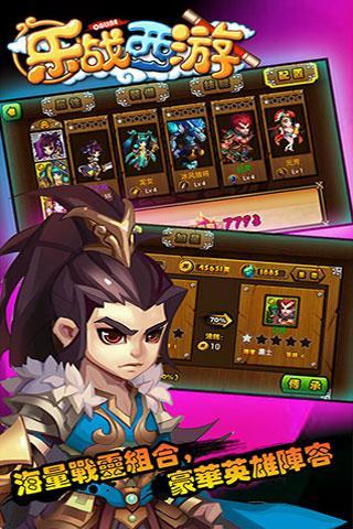 《乐战西游》是一款横版2D即时战斗MMORPG游戏,以《西游记》为故事蓝本,讲述了主角们在唐僧西行归来后天、地、人三界发生异变后,决定重启西行之路的故事。独创“全手势战斗”系统,力求通过华丽的战斗特效为玩家提供劲爆,超爽的战斗画面和战斗体验。玩家可从包括众多知名神话英雄的数百种战灵中组成冒险队伍。你,不是一个人在战斗。