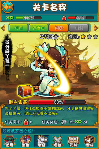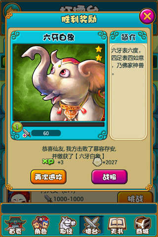 《大嘻游》以“大话西游”经典剧情为背景,集取经之路,斗法台,天书合成,通天宝塔,双休观等特色系统于一身。游戏融合了众多中国古代神话传说,Q版角色十分可爱,是一款玩法多样的精美卡牌作品。