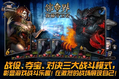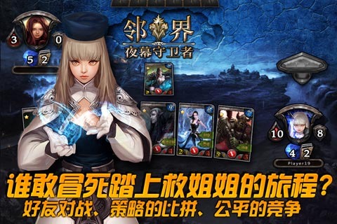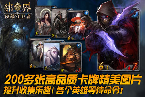 《邻界-夜幕守卫者》一款以北欧神话为故事背景的TCG策略卡牌手游,游戏内分故事、掠夺、对战三种战斗模式可供玩家选择,提升了游戏内战斗乐趣,现有二百多张精美卡牌供玩家收藏,生物卡牌、装备卡牌、魔法卡牌,每次作战前玩家可以根据自己战斗需求随意搭配卡组,选出44张卡组进行战斗,13个英雄每个都有自己特定的属性和技能,再配上玩家精心搭配的卡组使英雄在战场上所向无敌,与其他玩家对战彰显玩家的策略搭配技巧!~
