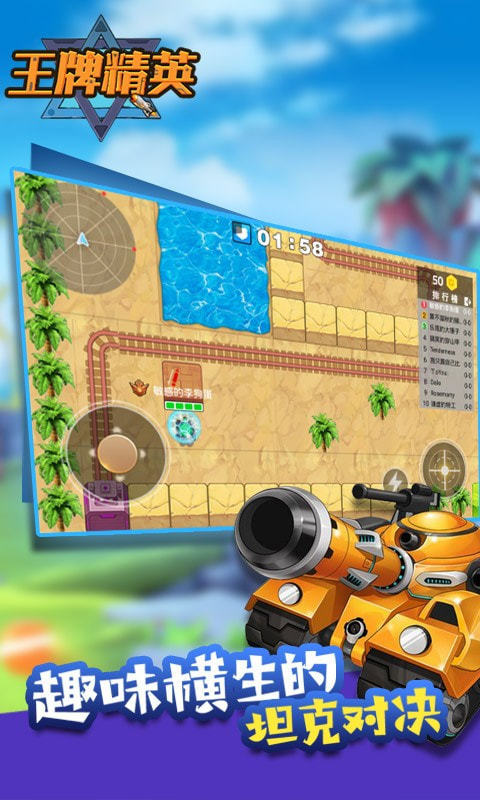 王牌精英是一款很好玩的坦克射击游戏。趣味横生的坦克对决,灵活走位活力全开,解锁全新的强力战车,多种坦克无限乱斗。游戏有很多种战车供玩家使用,击杀敌对坦克,获得最终的胜利,活到最后。你还在等什么,喜欢这款游戏的朋友快来下载吧。