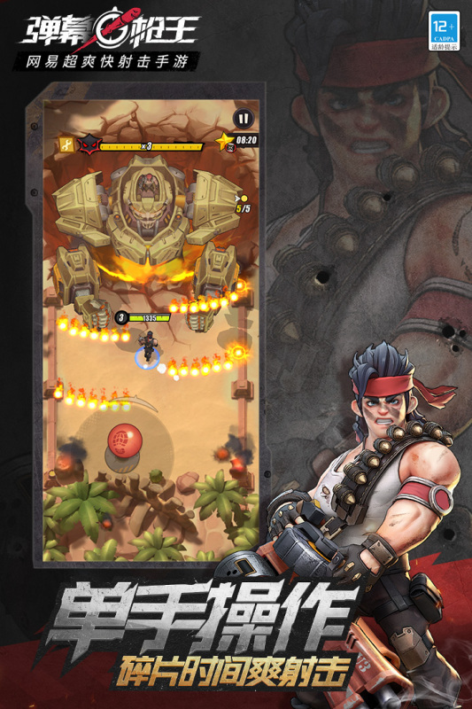 一命到底,不愧是你!《弹幕枪王》超爽快街机射击手游,2.5D竖版Roguelite射击,高品质战地场景,为你带来热血街机体验!自动瞄准,单手射击也能激爽对战。众多模组搭配,不同玩法流派,总能出奇制胜!丰富的机械养成体系,创造独一无二的佣兵战斗场面!
