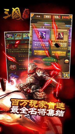 万众期待的手机版《三国·蜀门》震撼登场!三国题材精品美式卡牌游戏,美轮美奂的技能特效让万千粉丝玩家过目不忘。经典的三国战役重现,名将美人招募,绝对能让玩家过足三国霸主之瘾!熟悉的感觉,不一样的完美体验!乱世三国谁主沉浮?豪情壮志何处挥洒?风起云涌,跟着《三国·蜀门》穿越成为一方霸主!