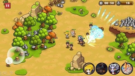 《圣物传说》是一款即时团队战斗类游戏,游戏以虚拟摇杆控制小队(适当走位),用技能把敌人轰成渣(可滑动头像选择技能方向)。