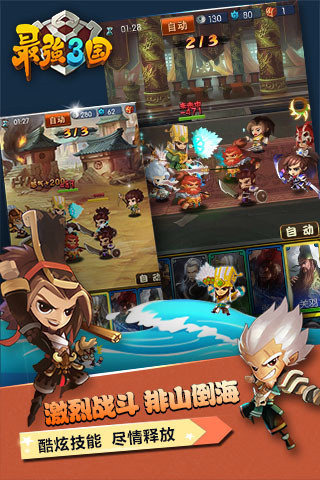 《最强三国》是一款2D竖版动作卡牌类游戏。游戏画面精美,战斗酣畅淋漓。华丽的动作与技能特效。在游戏中玩家选择不同风格的小伙伴组合,选择适当的时机手动释放无双技能,克敌制胜!